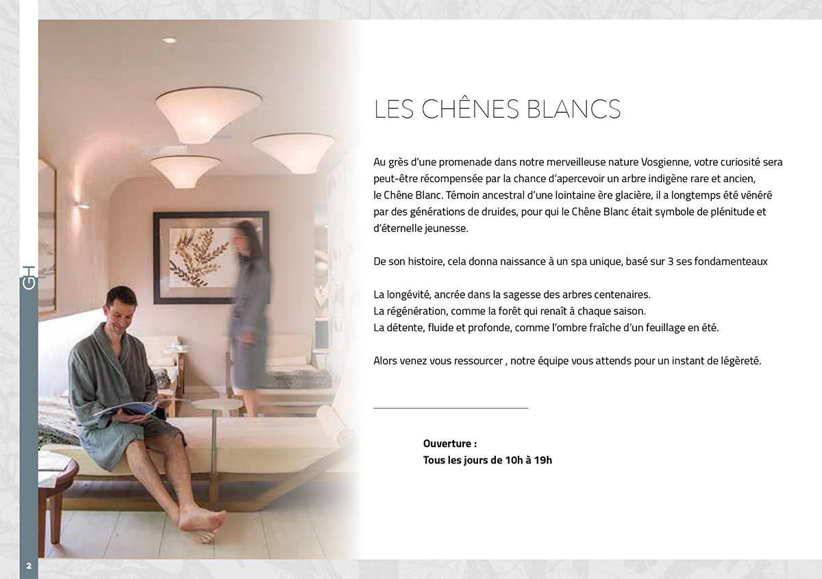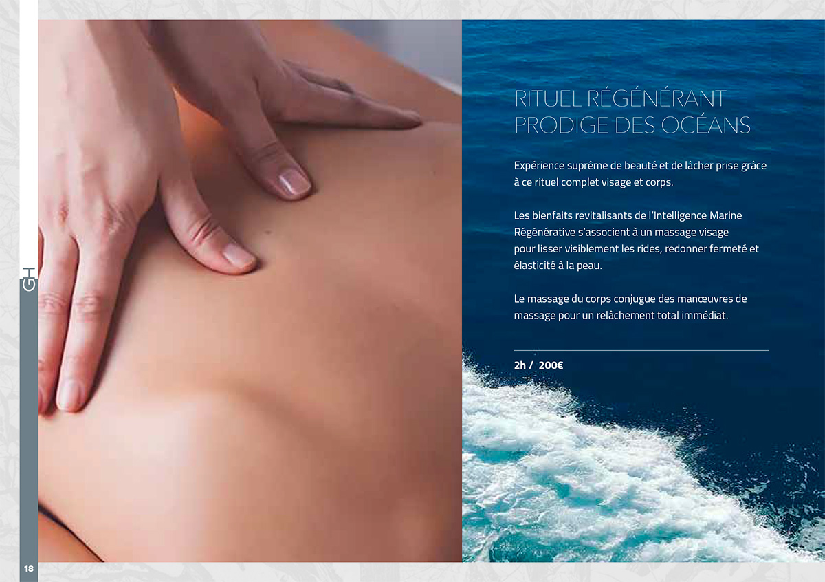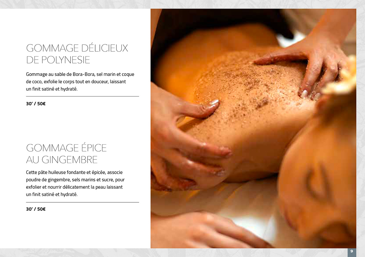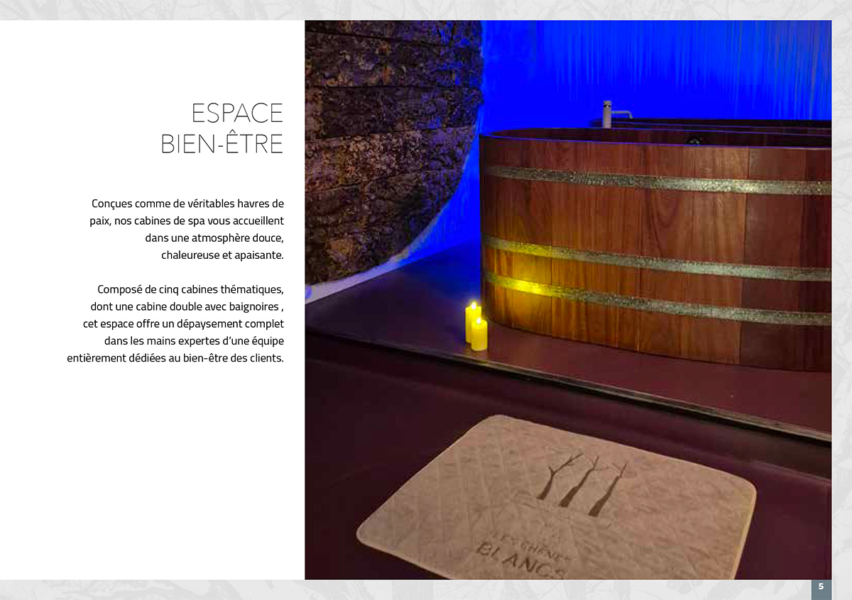 Composé de cinq cabines thématiques, dont une cabine double de 36m², cet espace offre un dépaysement complet dans les mains expertes d’une équipe d’esthéticiennes et masseuses entièrement dédiées au bien-être des clients.